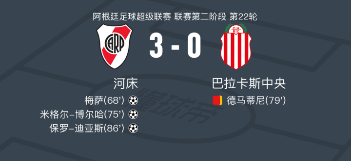 河床3-0大胜巴拉卡斯中央取阿超3连胜,保罗-迪亚斯破门,米格尔-博尔哈建功