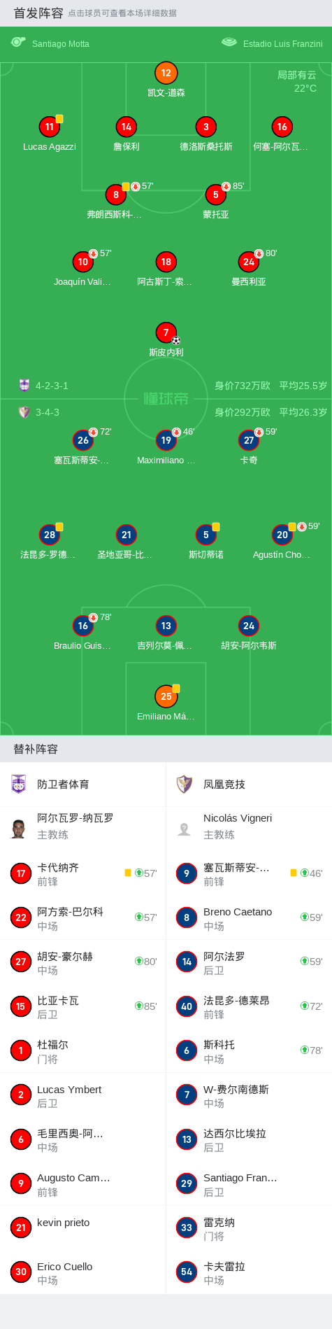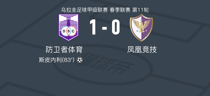 防卫者体育1-0凤凰竞技,斯皮内利绝杀战报bot @懂球帝2024-11-11 07:59在乌拉圭足球甲级联赛春季联赛的第11轮比赛中,防卫者体育坐镇主场迎战凤凰竞技。比赛中,防卫者体育的斯皮内利成功破门,为球队取得领先。最终,防卫者体育以1-0战胜凤凰竞技,取得了本场比赛的胜利。点击查看本场比赛详细数据>>点击查看乌拉甲完整积分榜>>精彩瞬间第83分钟,防卫者体育球员斯皮内利打入一球。 球队阵容 技术统计 展开更多