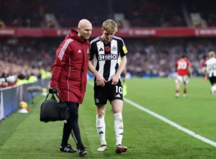安东尼-戈登在国际比赛日可能无法为英格兰队效力,他在英超联赛中纽卡3-1战胜诺丁汉森林的比赛中受伤离场。