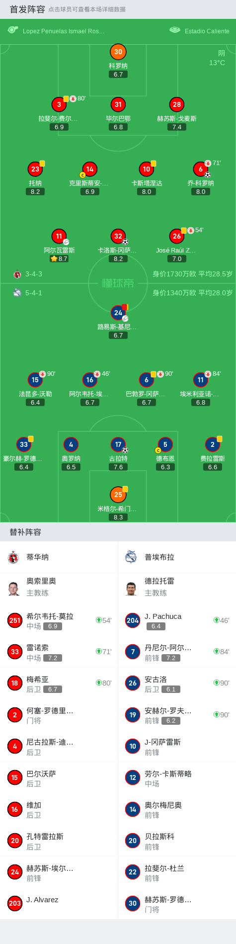 下半场补时第13分钟,蒂华纳球员雷诺索助攻卡洛斯-冈萨雷斯打入一球。