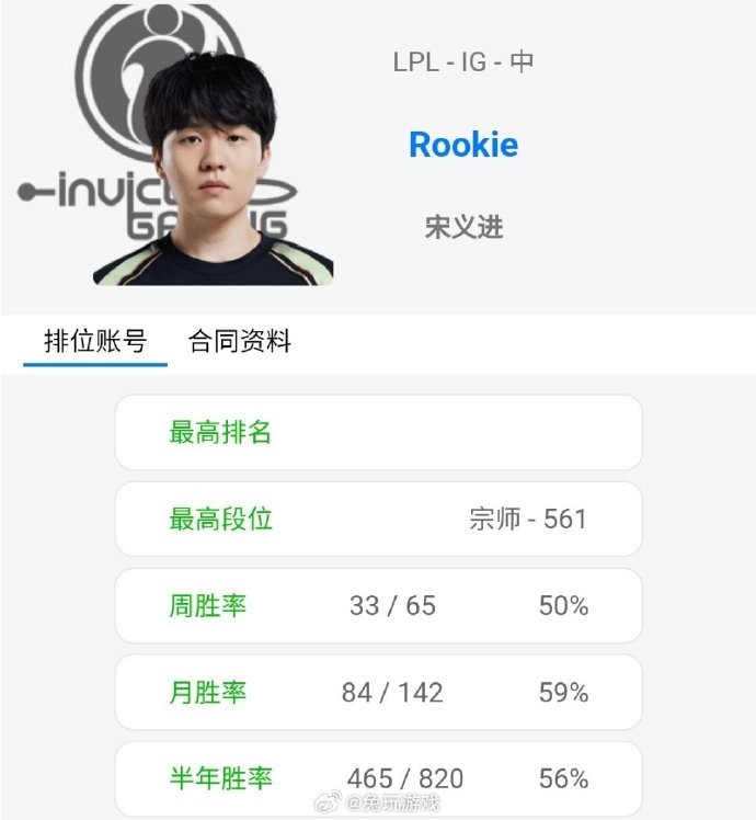 宋义进(游戏ID:Rookie),1997年3月11日出生于韩国,韩国英雄联盟职业选手,司职中单,曾效力于KTA战队、IG战队、V5战队、TES战队,现效力于NIP电子竞技俱乐部。