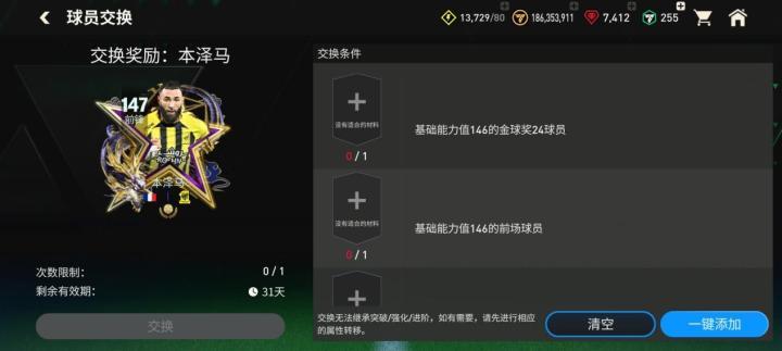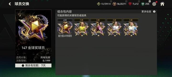 其中,金球奖本泽马玩家可以通过球员交换定向获取,其余四位金球奖球员则通过147能力值金球奖球员交换混合卡池获取。