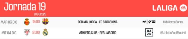 西甲官方公布了西甲联赛第19轮两场比赛的赛程安排,马略卡vs巴塞罗那将于北京时间12月4日凌晨2:00进行,毕尔巴鄂竞技vs皇家马德里将于北京时间12月5日4:00进行。