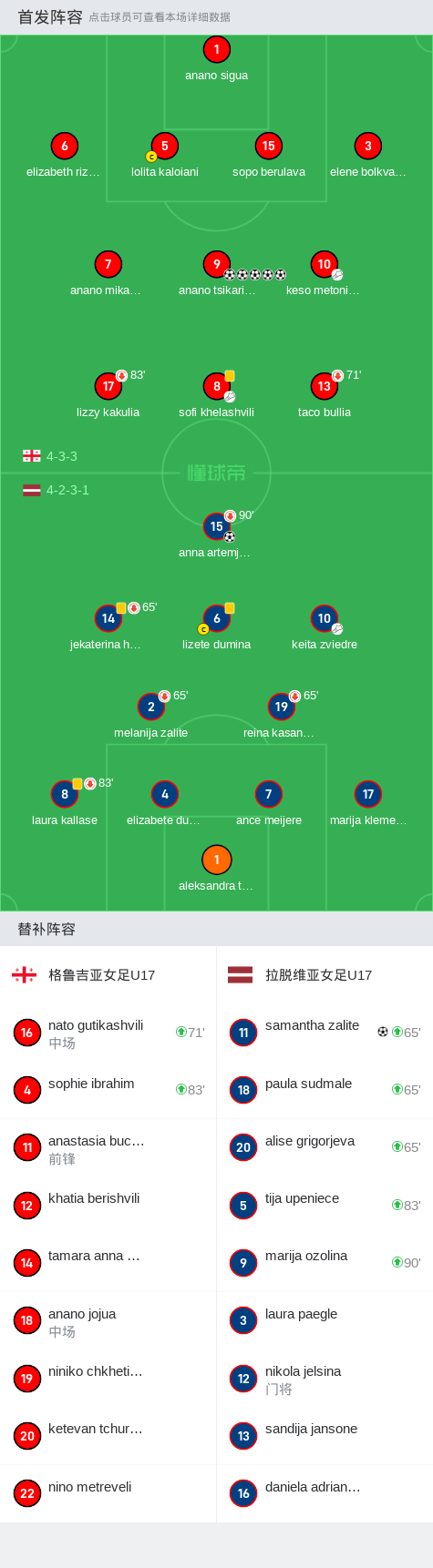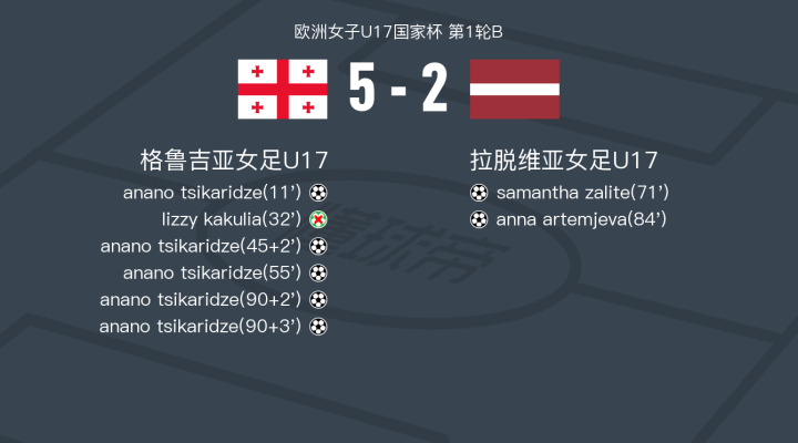 格鲁吉亚女足U17 5-2大胜拉脱维亚女足U17,anano tsikaridze五子登科