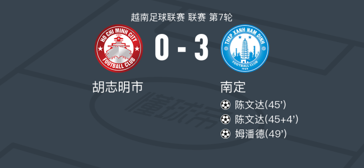 南定3-0大胜胡志明市,陈文达两球,姆潘德破门