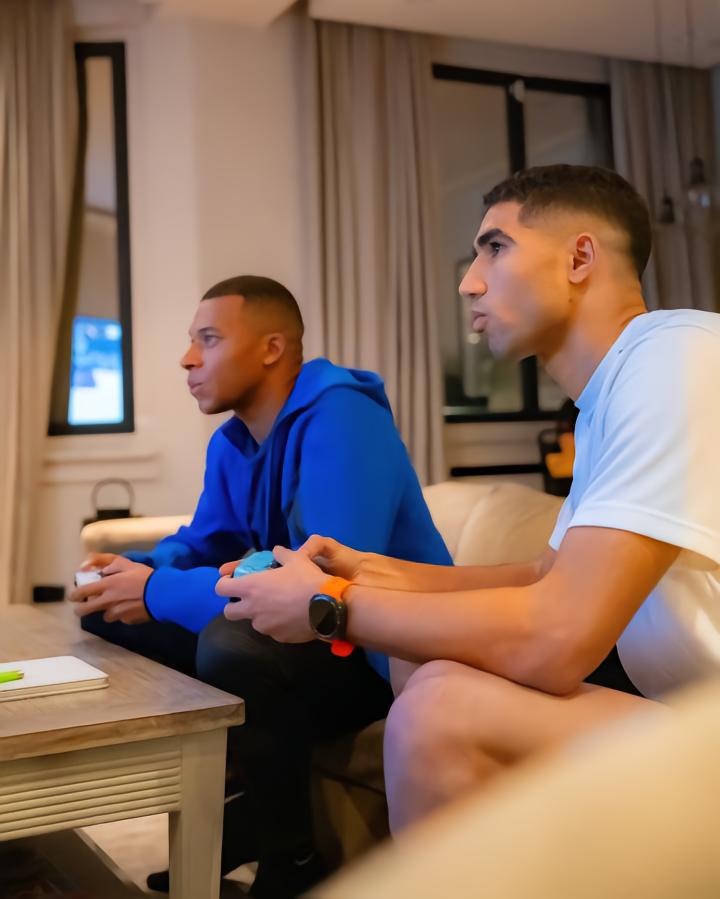 当地时间11月11日,姆巴佩在社交媒体晒出了他和前巴黎队友阿尔瑙-特纳斯、阿什拉夫以及阿什拉夫的好友Marcos Casares一起打笼式网球和玩电子游戏的照片。