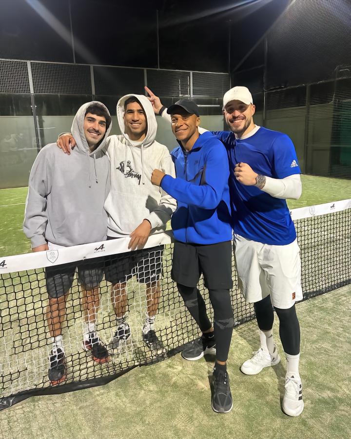 前巴黎队友重聚,姆巴佩晒与阿什拉夫、特纳斯打网球照片