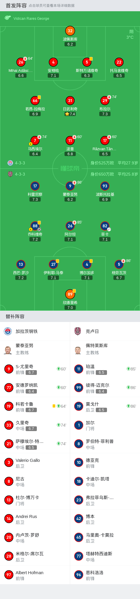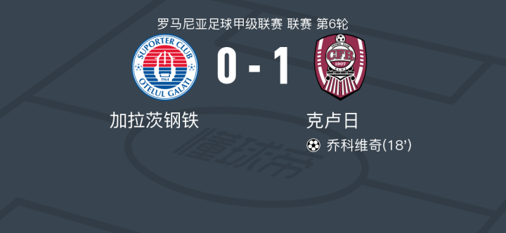 克卢日1-0加拉茨钢铁,乔科维奇助球队取胜