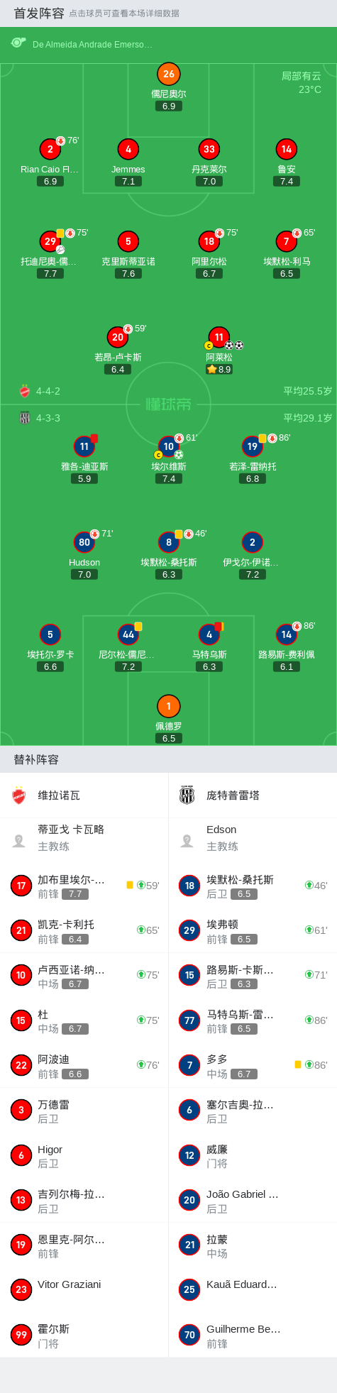 维拉诺瓦2-1逆转庞特普雷塔,阿莱松独中两元