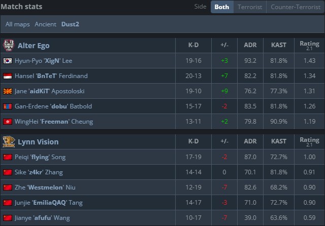 对手AE此役在图一图二表现出色,韧性十足,29岁前天禄大哥BnTeT险些成为CNCS杀手,不过他在图三也彻底哑火。韩国CS一哥XigN在被淘汰后将回国服兵役,职业生涯至今还未打进过Major正赛。