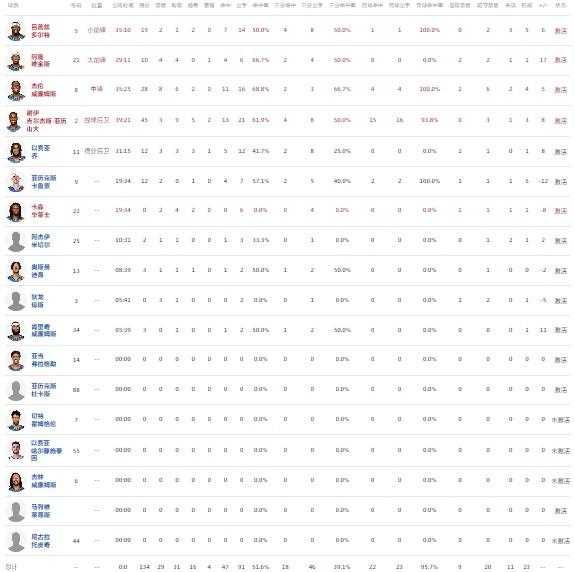洛杉矶快船诺曼-鲍威尔31分2板4助3断,德里克-琼斯23分5板3助1断,祖巴茨22分14板3帽。