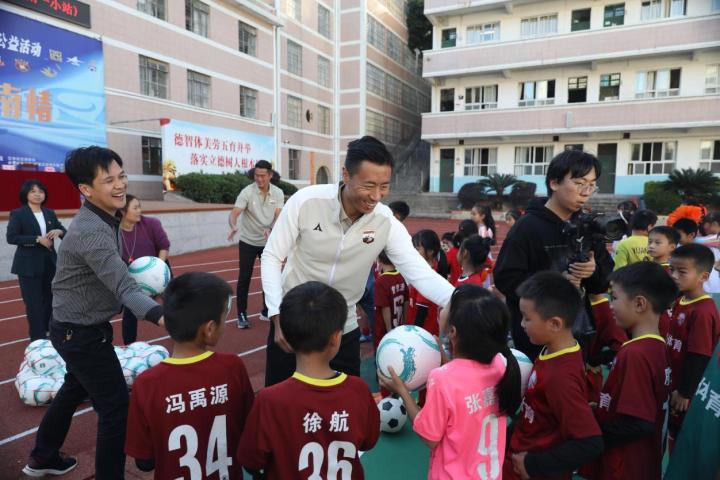 在场上激烈比拼的同时,各队名宿也纷纷走入定南县的中小学幼儿园,联手懂球帝发起的“星火公益计划”,为定南当地的孩子们带来懂球帝捐赠的足球,用实际行动感染孩子们爱上足球,并在内心种下坚持足球运动的种子。