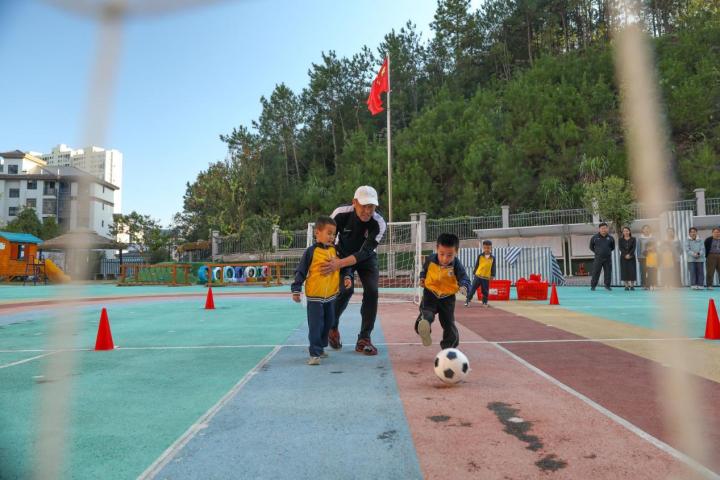 同时,名宿们也与师生们亲切互动,亲自教授孩子们足球技巧,并带领孩子们进行分队比赛,分享体育精神。让每一个孩子都能感受到足球带来的快乐与激情。在他们的鼓励下,孩子们勇敢地踏上绿茵场,用稚嫩的脚步追逐着属于自己的足球梦。