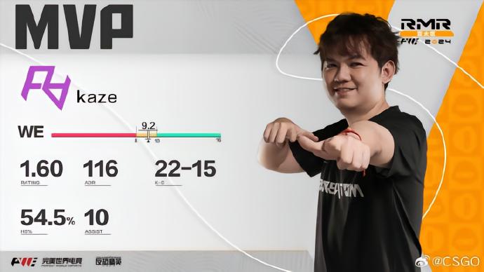 大场面狙击手,CNCS守护神!kaze疯狂砍下37杀,rating达到1.41。
