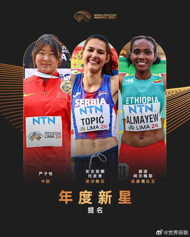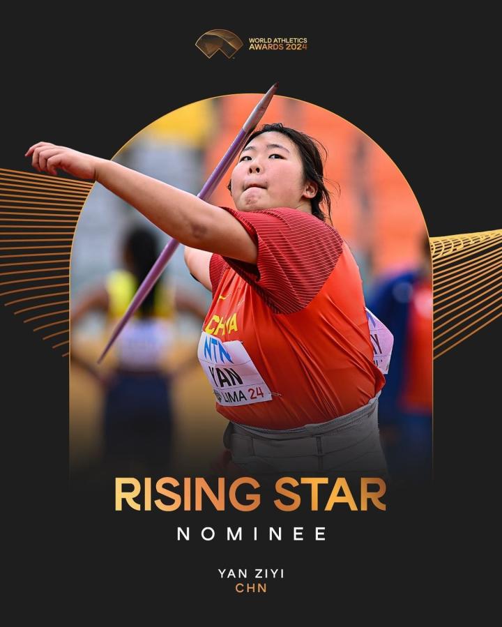 日前,世界田联公布年度男女新星提名名单,5个月内两度刷新标枪世界青年纪录的16岁中国选手严子怡入围。