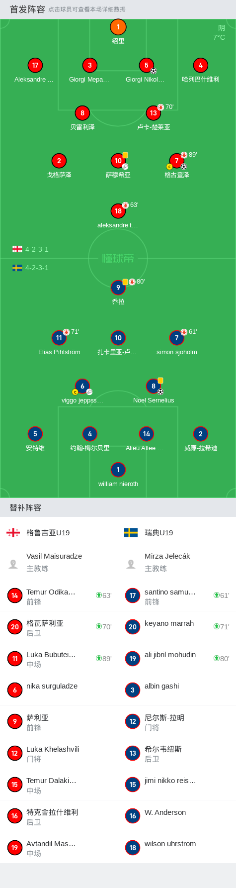 格鲁吉亚U19 2-1逆转瑞典U19,格古查泽建功,Giorgi Nikolaishvili破门