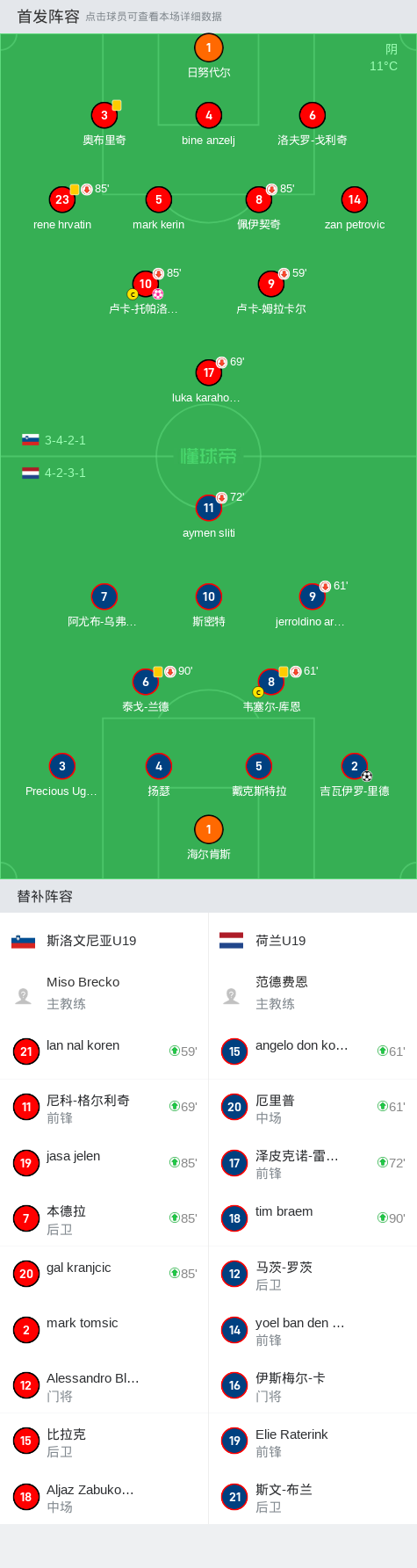 在欧洲U19国家杯资格赛中,斯洛文尼亚U19迎战荷兰U19。比赛中,斯洛文尼亚U19的卢卡-托帕洛维奇不慎将球打入自家球门,随后荷兰U19的吉瓦伊罗-里德再下一城,攻入一球。最终,荷兰U19以2比0战胜斯洛文尼亚U19。