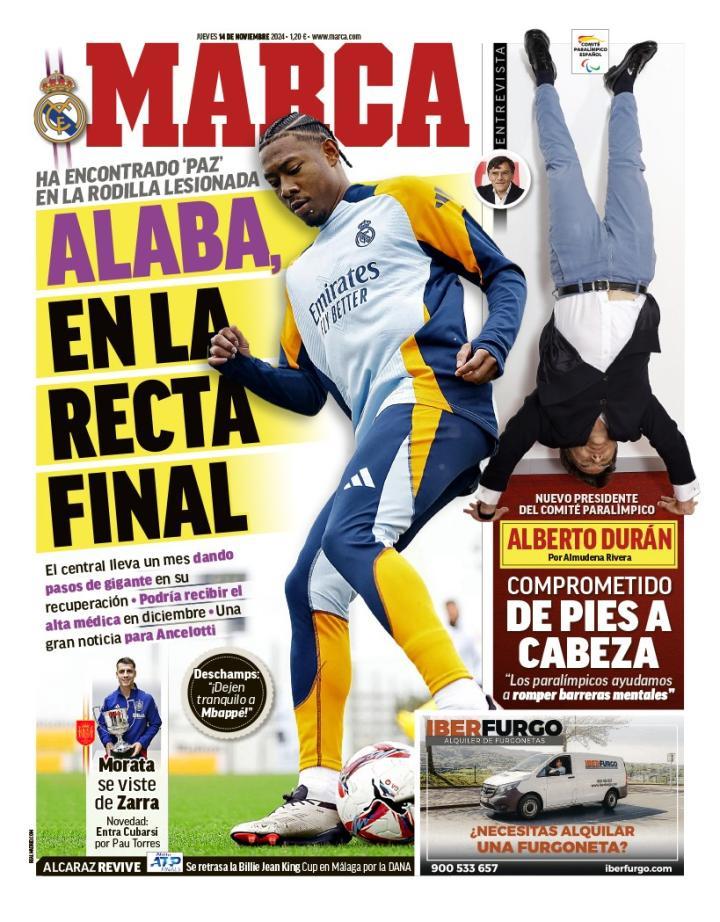 马卡头版:阿拉巴康复进入最后阶段,可能在12月份复出ETChalmers @懂球帝2024-11-14 11:42据《马卡报》头版的消息,皇马后卫阿拉巴可能在12月份复出。阿拉巴在去年12月遭遇十字韧带重伤,至今还没有复出。这位皇马后卫已经在近日恢复了有球训练。《马卡报》头版报道称,阿拉巴已进入康复的最后冲刺阶段,这位中卫在康复过程中迈出了重要的一步,他可能在12月份获得队医出战许可,这对于安切洛蒂来说,是一个好消息。展开更多