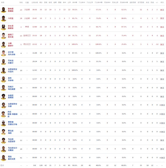 孟菲斯灰熊小贾伦-杰克逊29分7板1助2断1帽,斯马特15分2板6助1断1帽,阿尔达马15分7板5助3断1帽。