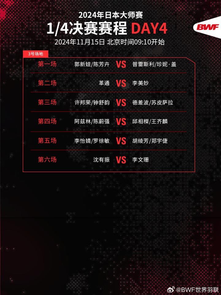 北京时间11月14日,今日的日本羽毛球大师赛所有赛程已全部结束。中国羽毛球队今日战绩为6胜6负,女单全部出局。