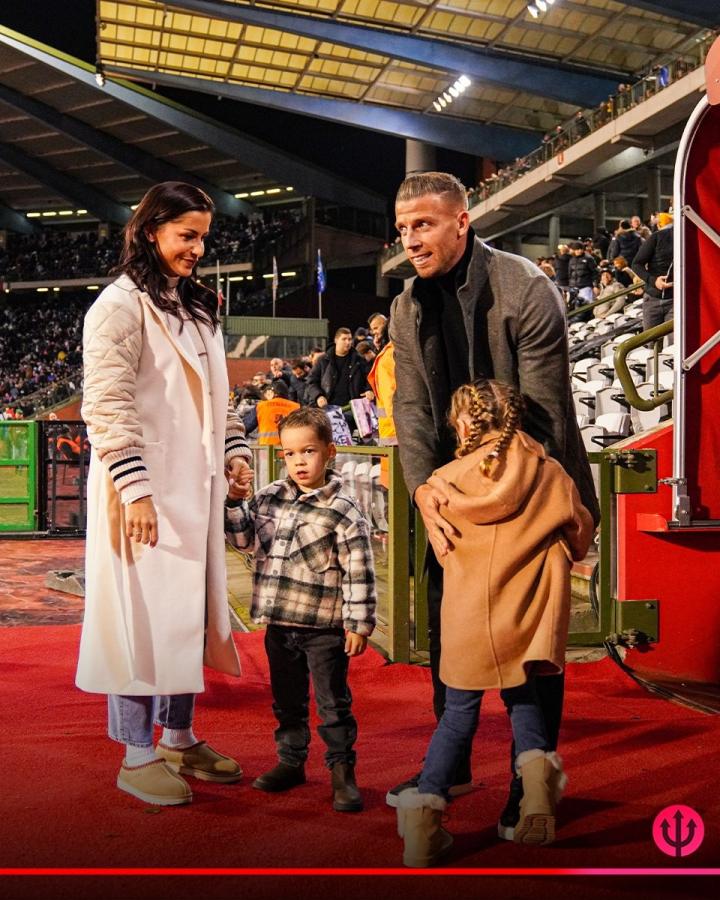 今日比利时主场对阵意大利期间,阿尔德韦雷尔德携家人现身球场,获赠国家队127场纪念球衣。