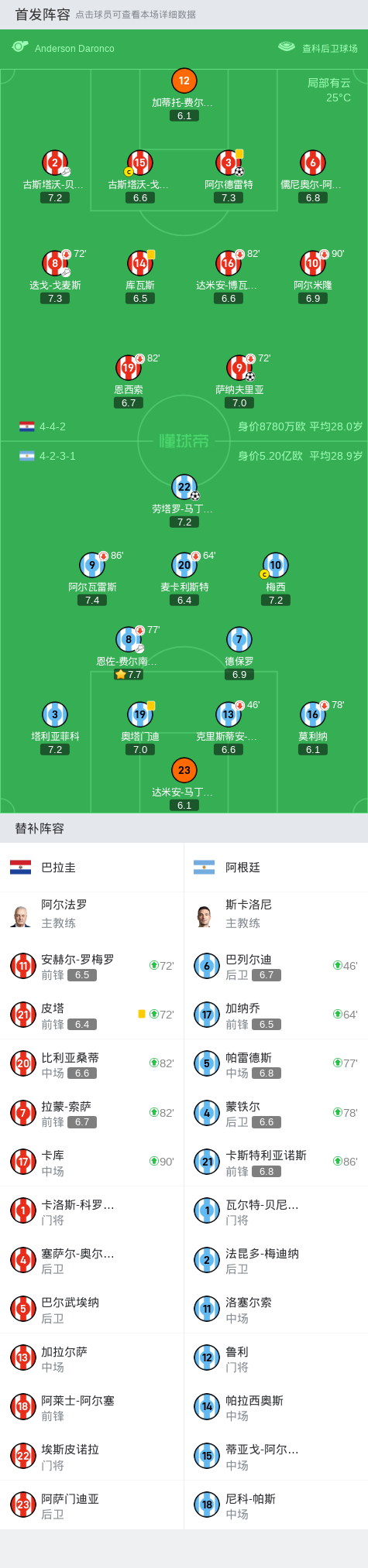 第46分钟,巴列尔迪替补登场,罗梅罗被换下