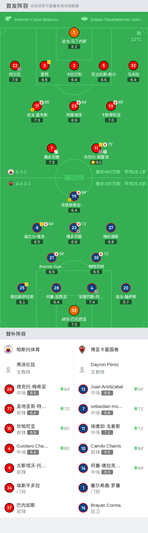 帕斯托体育3-2博亚卡爱国者,丹尼尔-莫雷诺双响,阿尔瓦破门