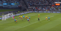 第12分钟,杜兰禁区高高跃起头球攻门,击中球门立柱外沿出了底线