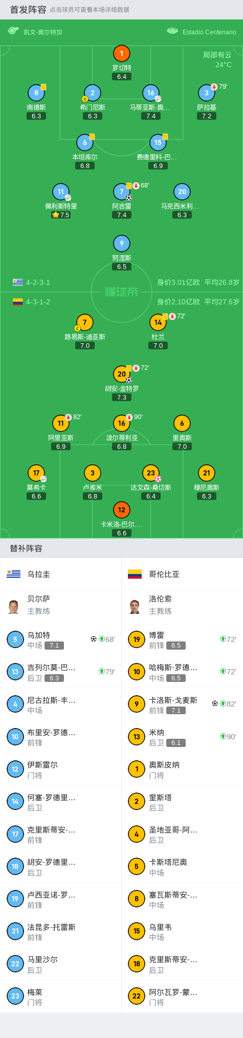第60分钟,三分钟两球,阿吉雷禁区低射破门助乌拉圭2-1反超比分