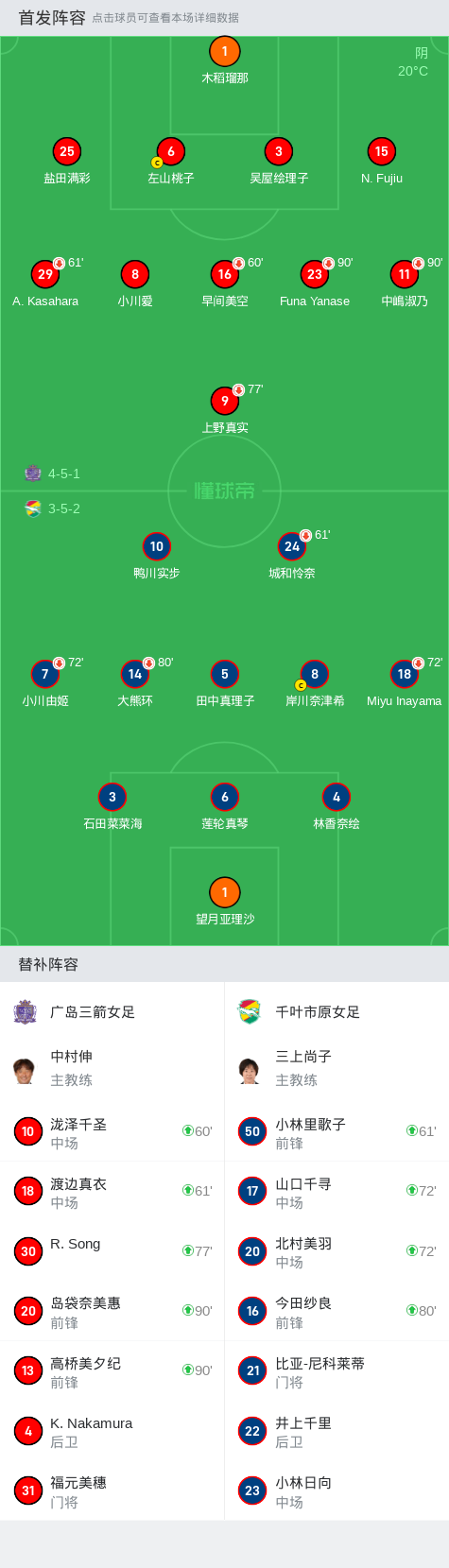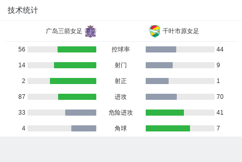 广岛三箭女足0-0千叶市原女足,秋色平分战报bot @懂球帝2024-11-16 14:57在日本女子职业足球联赛第9轮的较量中,广岛三箭女足与千叶市原女足展开了一场激烈的对决。经过双方球员的全力拼搏,比赛以0-0的比分结束。两队在场上展现了出色的技战术水平,防守端的稳固表现使得对手难以攻破球门。尽管比赛中创造了多次进攻机会,但双方都未能将其转化为进球,最终握手言和。点击查看本场比赛详细数据>> 球队阵容 技术统计 展开更多