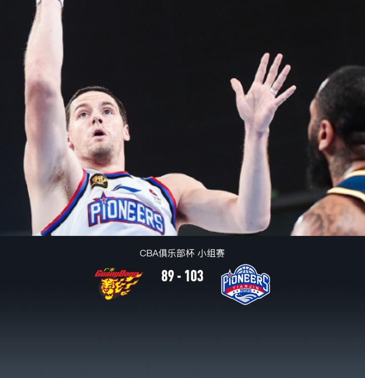 北京时间11月16日CBA俱乐部杯小组赛,广东东阳光对阵天津先行者。半场广东30-48天津,最终广东89-103天津。广东男篮俱乐部杯战绩目前为1胜2负,天津男篮则为2胜1负。