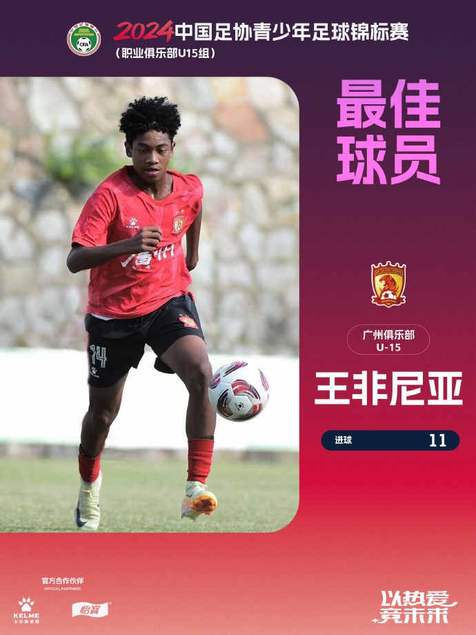 北京时间11月16日,U15联赛官方宣布,广州队混血中场王非尼亚当选本届赛事最佳球员。