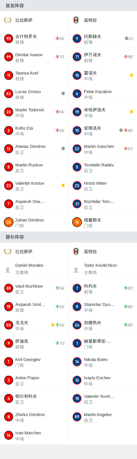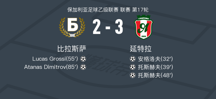 第85分钟,比拉斯萨球员Atanas Dimitrov打入一球。