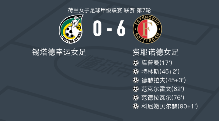 费耶诺德女足6-0横扫锡塔德幸运女足,范德拉瓦尔、科尼嫩贝尔赫破门