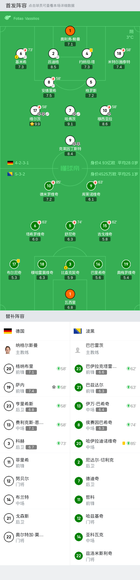 第66分钟,萨内禁区过人抽射破门,德国6-0领先波黑