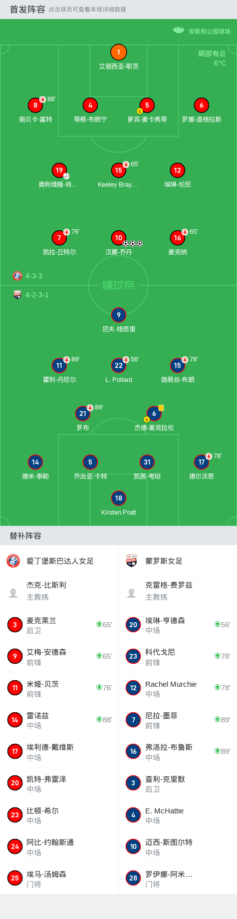 爱丁堡斯巴达人女足3-0大胜蒙罗斯女足,汉娜-乔丹帽子戏法