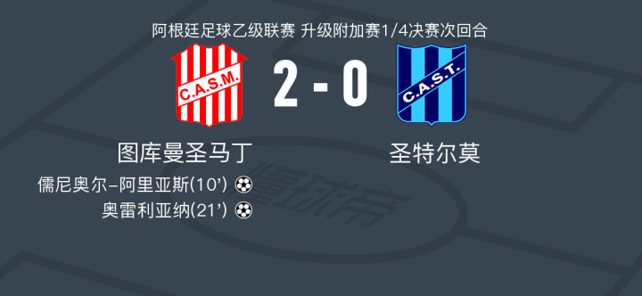 图库曼圣马丁2-0圣特尔莫,儒尼奥尔-阿里亚斯建功,奥雷利亚纳锁定胜局