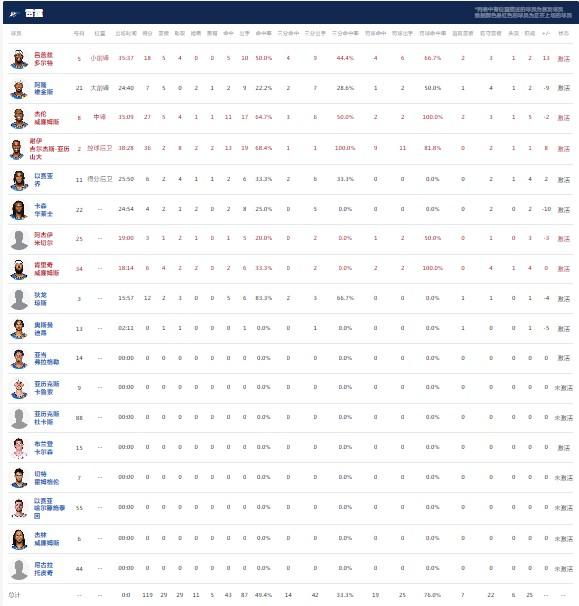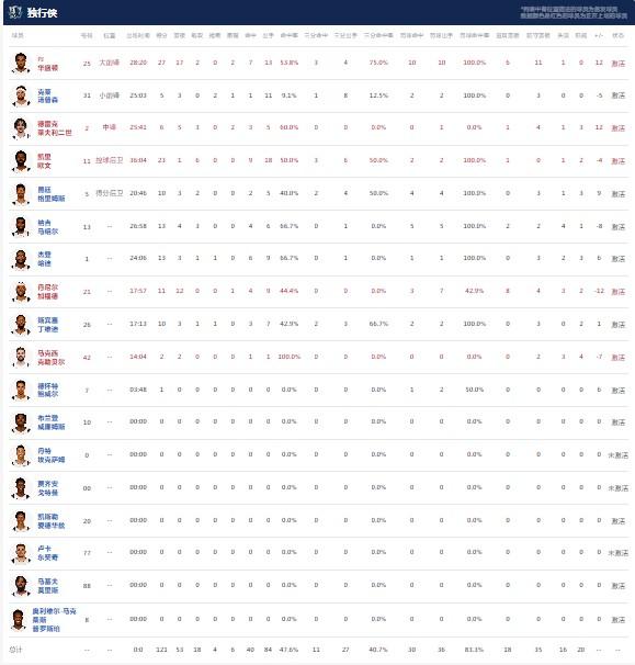 俄克拉荷马雷霆亚历山大36分2板8助,杰伦-威廉姆斯27分5板4助;达拉斯独行侠PJ-华盛顿27分17板2助,欧文23分1板6助,克莱11投中1得5分3板。