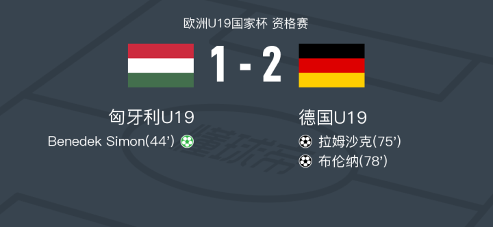 德国U19 2-1逆转匈牙利U19,布伦纳建功,拉姆沙克破门