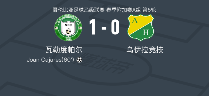 瓦勒度帕尔1-0乌伊拉竞技,Joan Cajares一击制胜战报bot @懂球帝2024-11-19 06:56在哥伦比亚足球乙级联赛春季附加赛A组的较量中,瓦勒度帕尔坐镇主场迎战乌伊拉竞技。比赛中,瓦勒度帕尔的Joan Cajares成功攻入一球,为球队奠定胜局。最终,瓦勒度帕尔以1-0战胜乌伊拉竞技,取得了本场比赛的胜利。点击查看本场比赛详细数据>>精彩瞬间第60分钟,瓦勒度帕尔球员Joan Cajares打入一球。 球队阵容 技术统计 展开更多