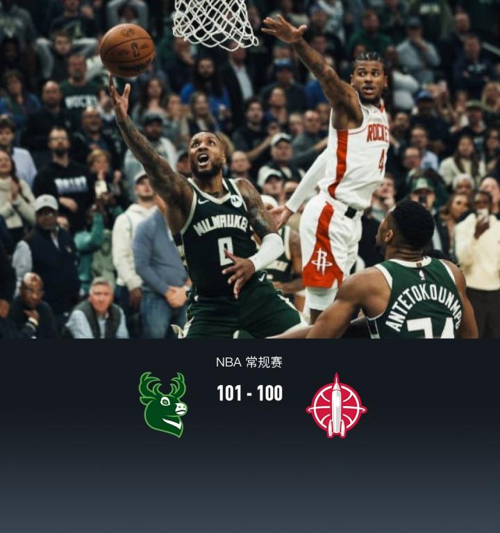字母哥关键封盖+利拉德关键上篮,雄鹿101-100险胜火箭