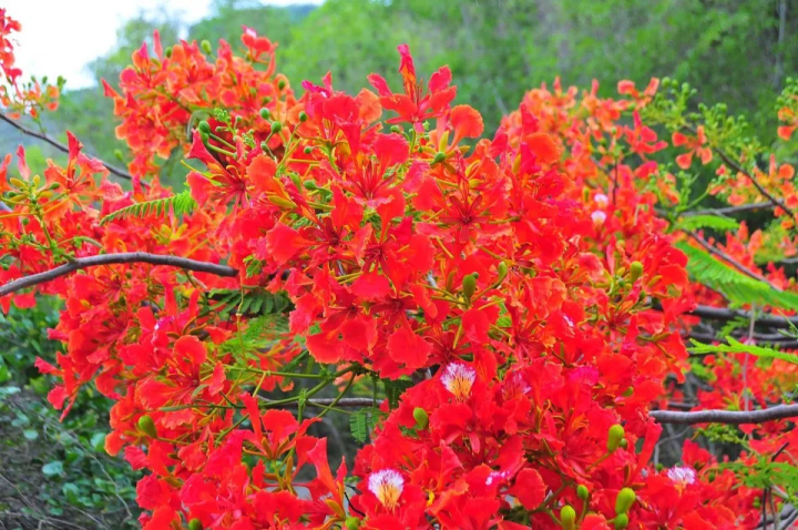 领头鹭洒过鲜血的土地上,长出一颗挺拔的大树,树的叶子像大鹭翅膀一样张开,树开的花像大鹭的鲜血一样火红,这种树木就是那首歌曲《凤凰花开的路口》所唱的凤凰花。