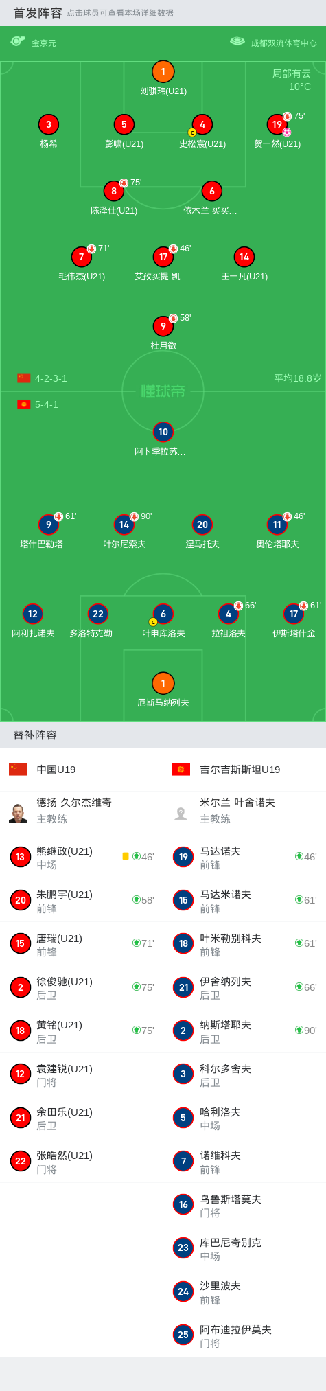 第46分钟,国青中场换人,艾孜买提被换下,熊继政登场