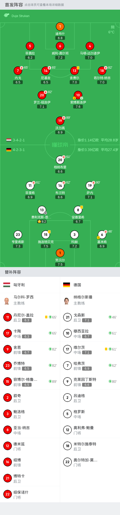 匈牙利1-1德国,恩梅加破门,索博斯洛伊点球绝平
