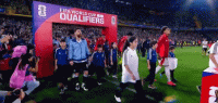 双方球员步入球场,大战即将打响