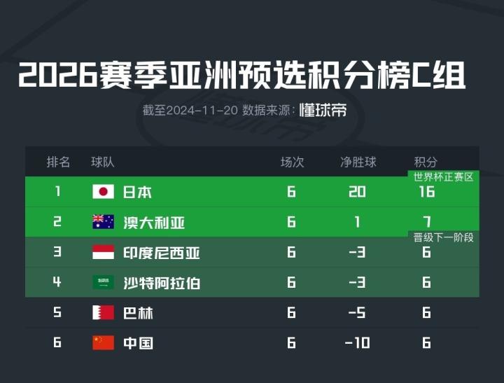 目前世预赛18强赛C组排名情况