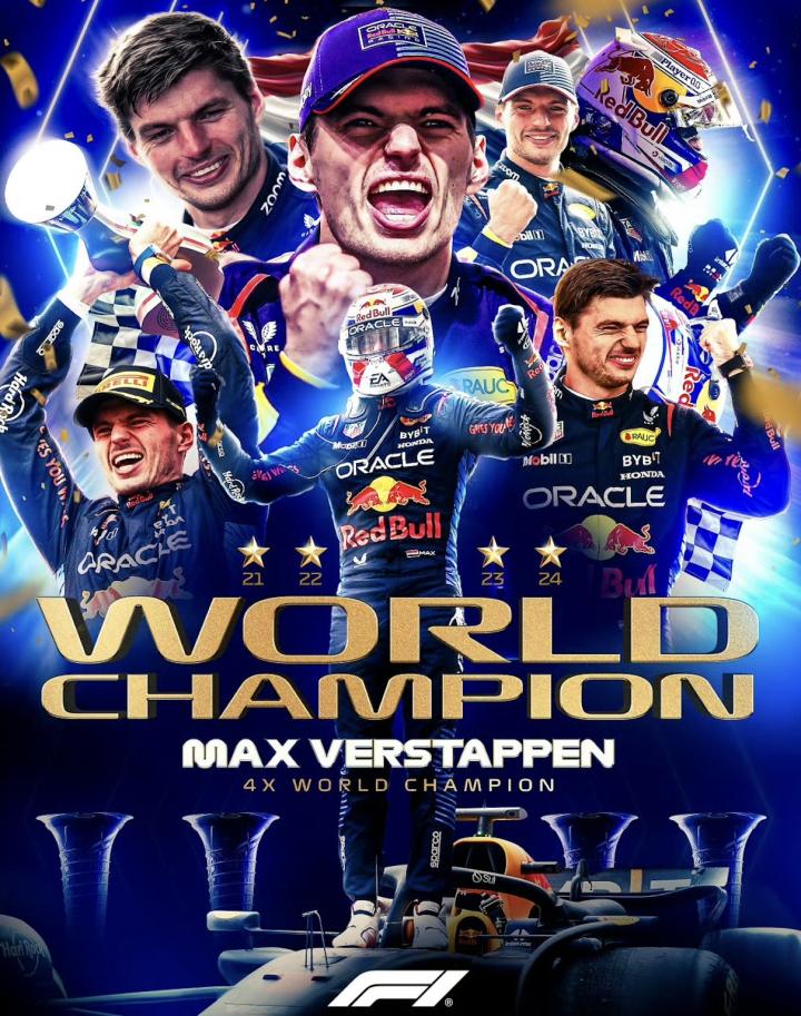 四冠王!维斯塔潘提前加冕F1 2024赛季车手总冠军