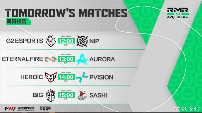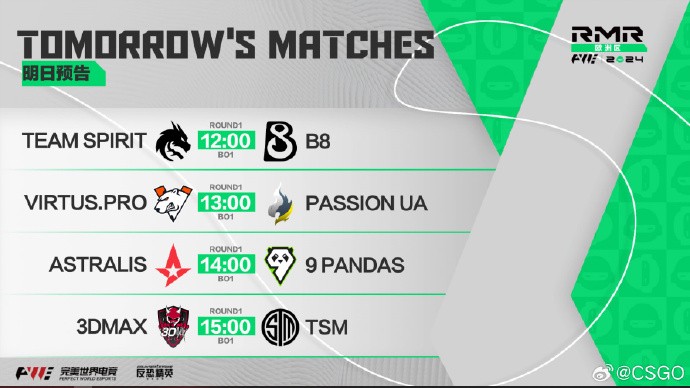11月21日(今日)中午12:00,欧洲区RMR-B组赛事将正式开打,G2、绿龙、Astralis等队将出战,所有队伍都将进行两轮BO1的比赛。首轮BO1安排如下图所示。