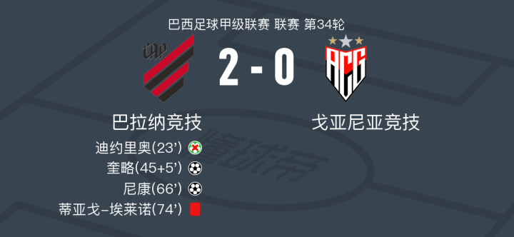 巴拉纳竞技2-0戈亚尼亚竞技,奎略建功,尼康锁定胜局