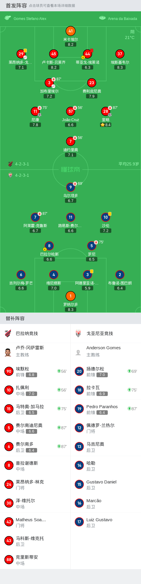 第66分钟,巴拉纳竞技球员莱昂纳多-戈多伊助攻尼康打入一球。